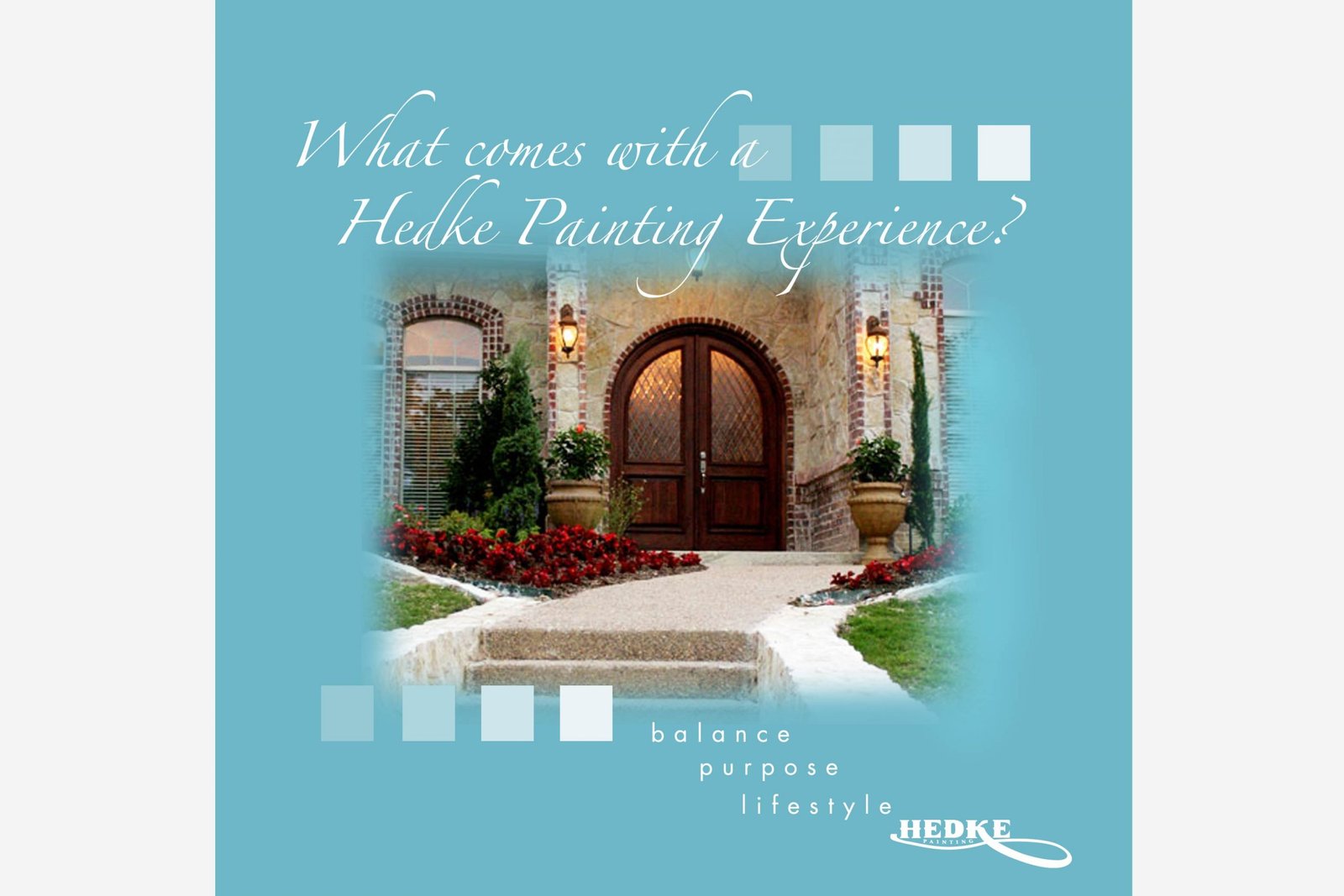 The campaign was also repeated on the brochures that were designed for the company. However, with the brochure, the slogan was slightly altered to focus on the entire painting experience, because the brochure is a multi-page booklet with comprehensive information that gives a complete overview of the company and the entire painting experience that they provide. The cover image is a photo of a luxury home. The photo was chosen because this painting company wanted to increase their appeal to clients with luxury homes.