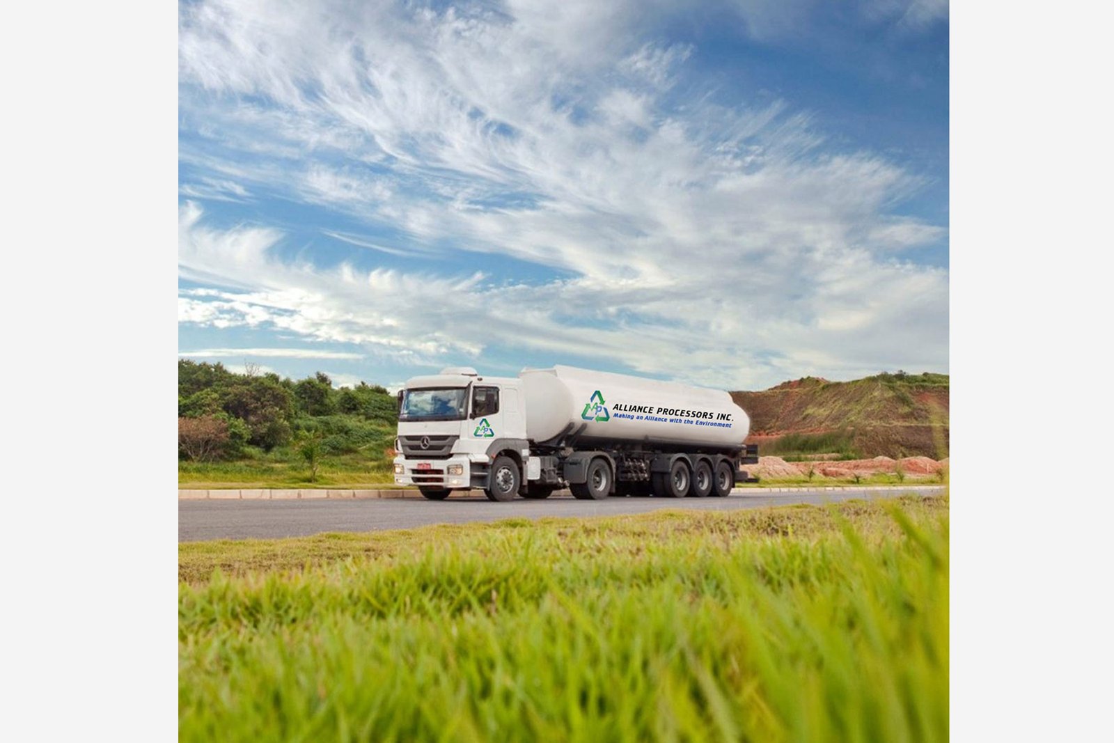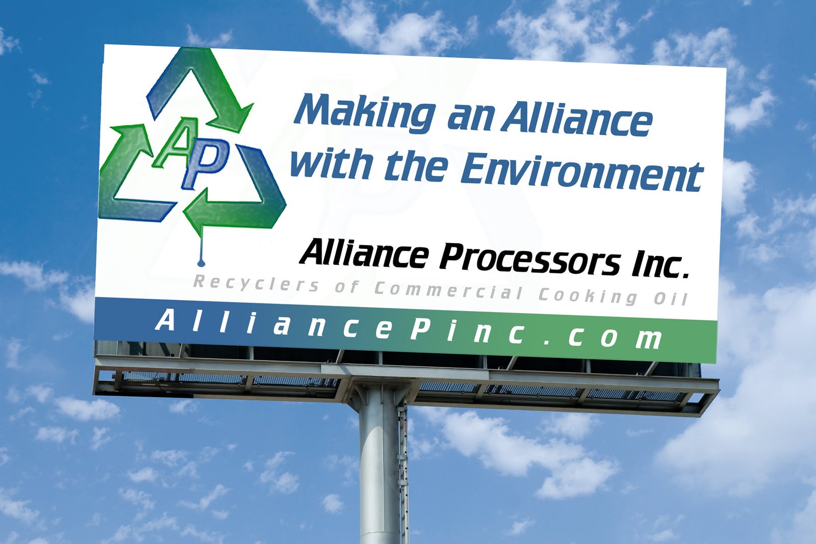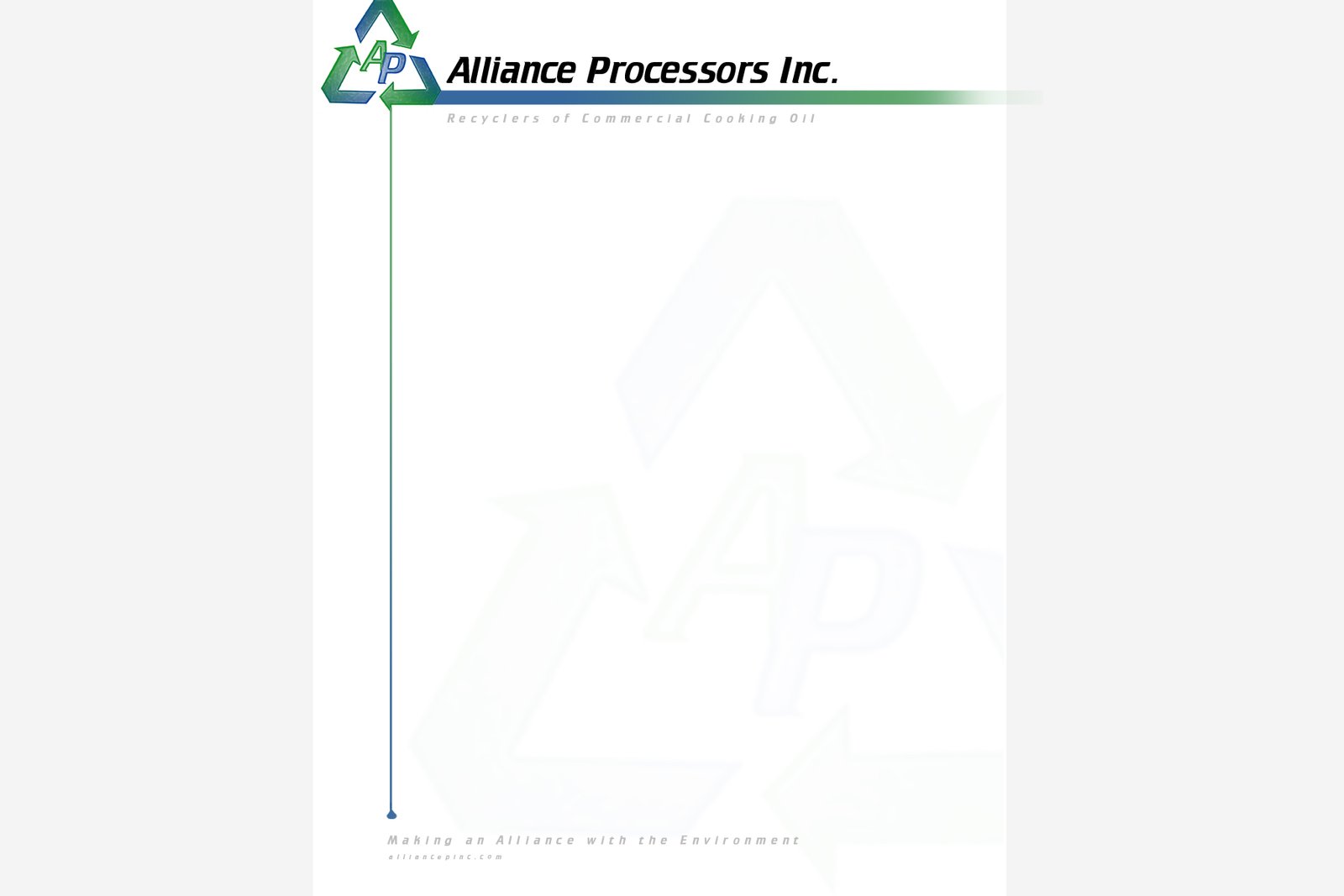 On the recycling symbol, we used a texture that resembled the texture of cooking oil without making it look like yellow or gold cooking oil. This also gave the logo a 3 dimensional quality. To give the logo a focal point, we placed the company’s initials “AP” inside the recycling symbol. This also created a solution for direct recognition of the company’s name from long distances, such as when one of their trucks is driving down the highway.