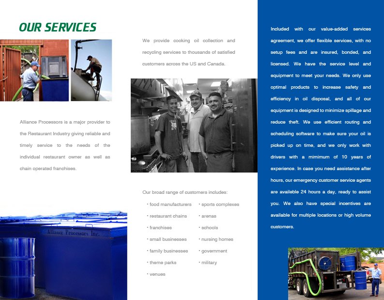 Because they are recyclers of commercial cooking oil, we integrated the universal symbol for recycling into their new logo design. We used the green and blue color scheme that is associated with international “Earth Day” celebrations.