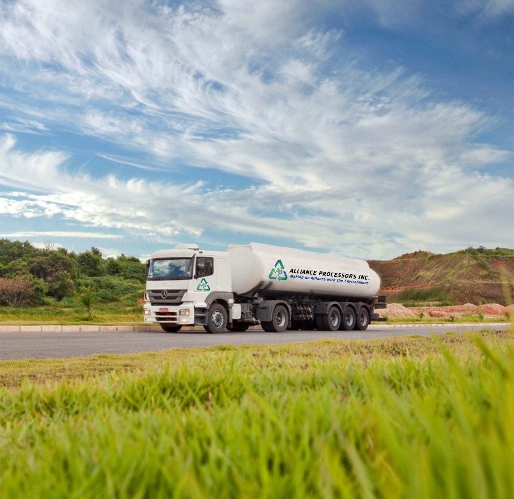 On the recycling symbol, we used a texture that resembled the texture of cooking oil without making it look like yellow or gold cooking oil. This also gave the logo a 3 dimensional quality. To give the logo a focal point, we placed the company’s initials “AP” inside the recycling symbol. This also created a solution for direct recognition of the company’s name from long distances, such as when one of their trucks is driving down the highway.